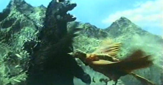 エビラと戦って決着がつかず、くつろいでいたゴジラに対して不意打ちで、怪鳥大コンドルが襲い掛かる。ゴジラの放射火炎を直撃で食らいあえなく海に沈没した。