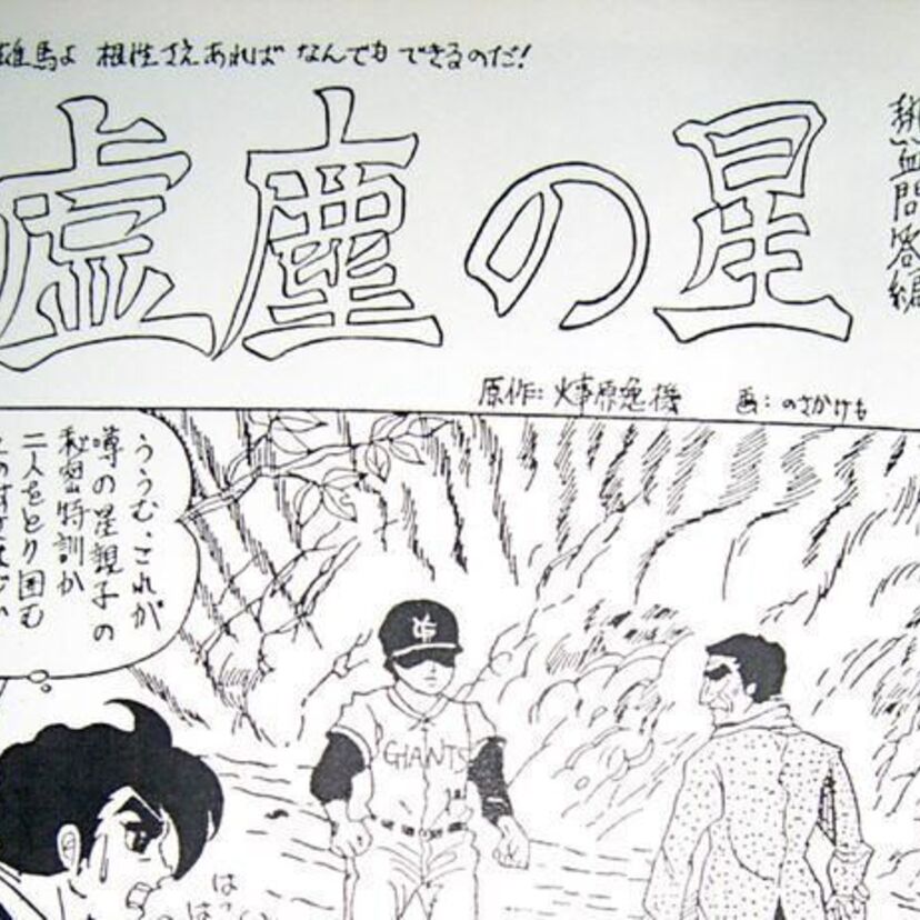 1975年、新潟中央高校在学中に「のさかけも」名義で巨人の星の同人誌「虚塵の星」を発表しました。原作は梶原一騎ならぬ「火事原逸機」と、完全にパロディに徹しています!