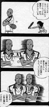 テニスボーイは、テニスの王子様の先輩にあたる話です。テニスの王子様以上に無茶な技が出てきます。美女はテニスボーイのほうが多いです。